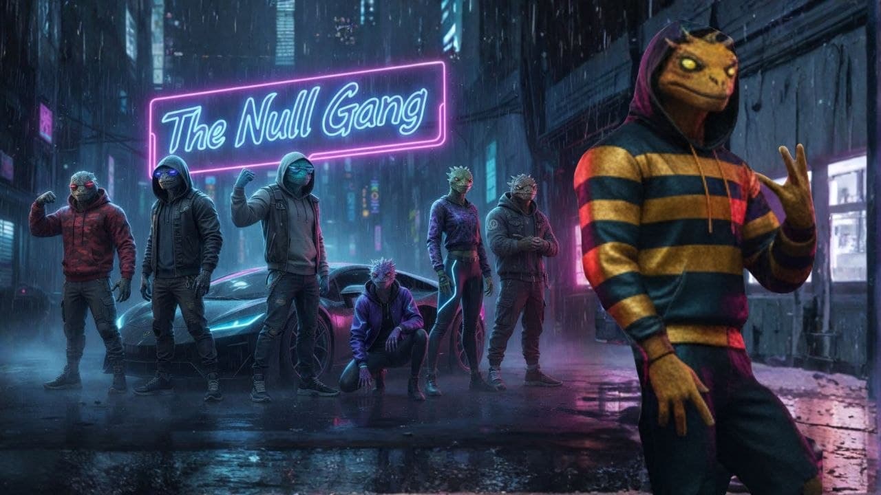 Shadow-born reptile hackers who erase structures (networks, identities, histories), preferring absence over spectacle. The story bible develops distinct archetypes (broker, enforcer, hacker, phantom) beneath the collective brand.